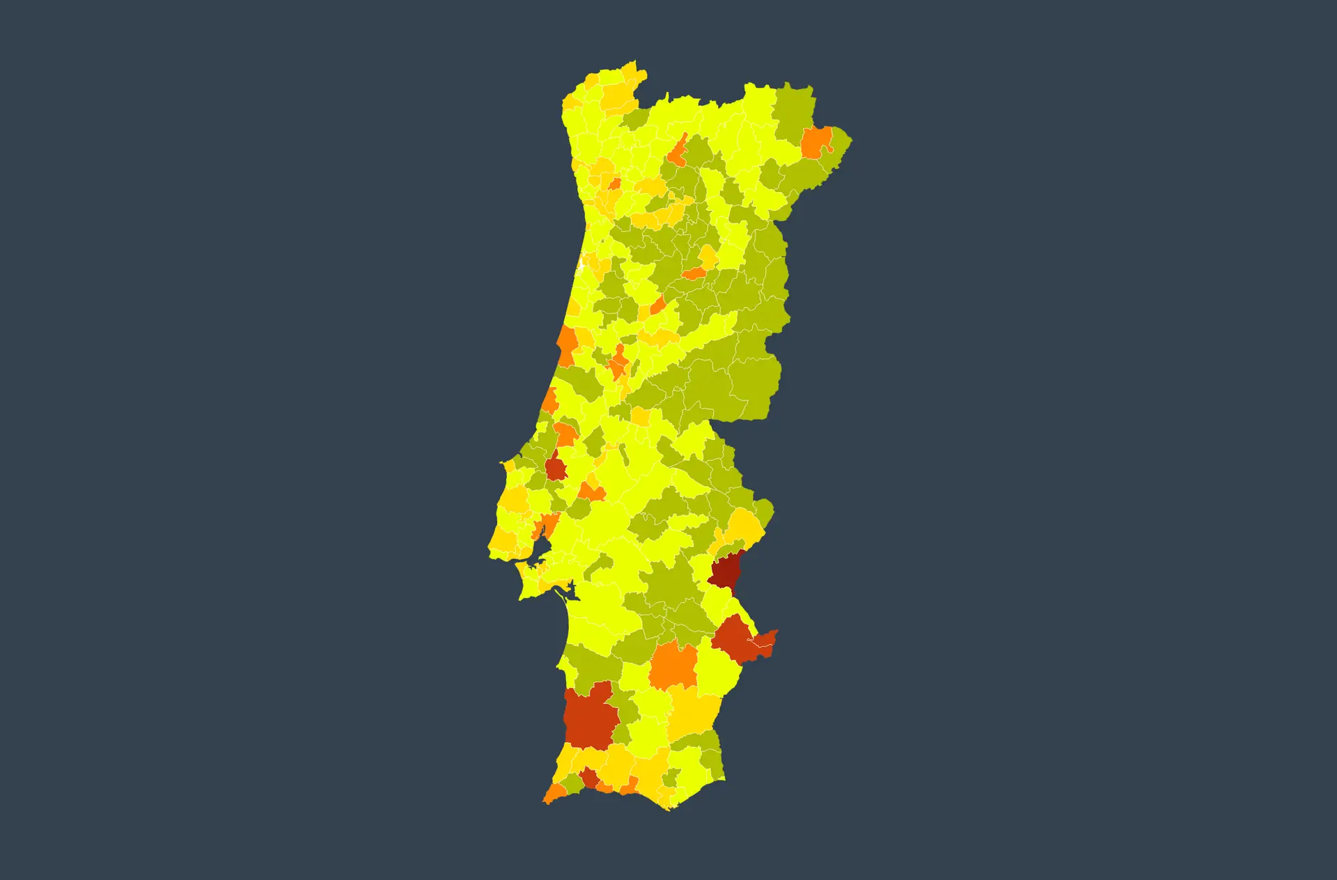 Dgs 85 Dos Concelhos Portugueses Em Risco De Contagio Extremo Ou Muito Elevado Observador from bordalo.observador.pt Saiba mais na página portugal 2020 no portal do iapmei. ❮ ❯ existem em portugal 308 concelhos distribuidos por 18 distritos e 2 regiões autónomas (*). Vila nova de gaia, 302 296 habitantes. A rápida descida no ritmo de propagação da pandemia em portugal, iniciada nos últimos dias de janeiro, já se reflete de forma vincada na incidência da no espaço de uma semana, o número de concelhos em risco extremo diminuiu de 119 para apenas 15, revelam os dados divulgados esta. Dezasseis concelhos em risco muito elevado de incêndio. Mais de 70% dos concelhos portugueses em risco extremo. Comércio e restauração fecham mais cedo. Afinal, quantas e quais são as variantes do coronavírus que.